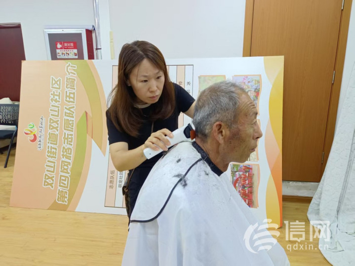 信网7月9日讯7月9日上午,青岛市北区双山社区便民服务专场活动在辖区内的小区常态化开展,今天的服务专场充满着满满的感动,志愿者悉心为多位高龄老人理发、志愿者戴老花镜专门“攻克”棘手的刀具、志愿者意外收到来自社区的一份小“心意”,一次又一次的双向奔赴,给这个炎热的夏天增添了几分特别的“舒适”。